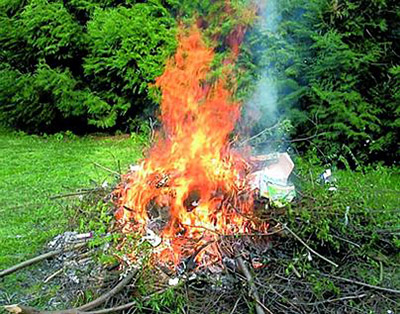 Il est interdit en tout temps, sur tout le territoire de la municipalité, de brûler du bois traité ou recouvert de peinture, de teinture, etc., des herbes, des feuilles mortes, des ordures ménagères,des pneus, des bardeaux d’asphalte, des produits formés ou contaminés par le goudron, les plastiques, la colle, le caoutchouc, les solvants ou tout autre produit polluant.